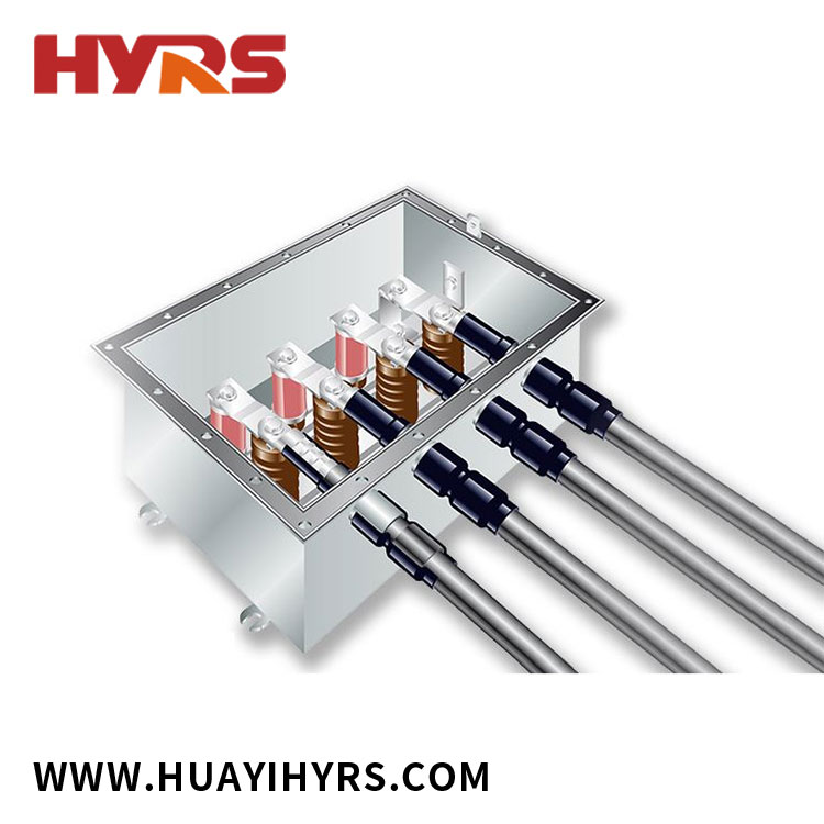 पृथ्वी संरक्षण बॉक्सचे अनेक प्रकार आहेत, JHX क्रॉस कनेक्शन बॉक्स उच्च व्होल्टेजसाठी योग्य आहे (35kV, 66kV, 110kV, 220kV) क्रॉस कनेक्शन संरक्षण ग्राउंडिंगच्या सिंगल कोर क्रॉस-लिंक्ड केबल मेटल संरक्षणात्मक स्तर, ते वाढ मर्यादित करू शकते. मेटल शीथ आणि इन्सुलेट जॉइंटच्या दोन्ही बाजूंना ओव्हर-व्होल्टेज, ते मेटल शीथचे प्रेरित व्होल्टेज नियंत्रित करू शकते, म्यानमधील रिंग करंट कमी करू शकते किंवा काढून टाकू शकते आणि केबलची ट्रान्समिशन क्षमता सुधारू शकते, केबल म्यान तुटण्यापासून रोखू शकते. खाली, केबलचे सुरक्षित आणि विश्वासार्ह ऑपरेशन सुनिश्चित करा. बॉक्सचे मुख्य भाग स्टेनलेस स्टीलचे बनलेले आहे, उच्च यांत्रिक शक्ती आणि चांगले सीलिंग आणि जलरोधक कामगिरीसह; T2 कॉपर बस-बारचा वापर अंतर्गत टर्मिनल बोर्डसाठी केला जातो, लहान संपर्क प्रतिकार आणि उत्कृष्ट चालकता; संरक्षक लेयर प्रोटेक्टरमध्ये विश्वासार्ह कार्यप्रदर्शन आहे, जे केबल संरक्षक स्तराच्या ओव्हर-व्होल्टेजला प्रभावीपणे रोखू शकते आणि केबलचे सामान्य कार्य सुनिश्चित करू शकते. संरक्षक चांगल्या सीलिंग कार्यक्षमतेसह दोन सीलिंग आणि एक फॉर्मिंग स्वीकारतो.